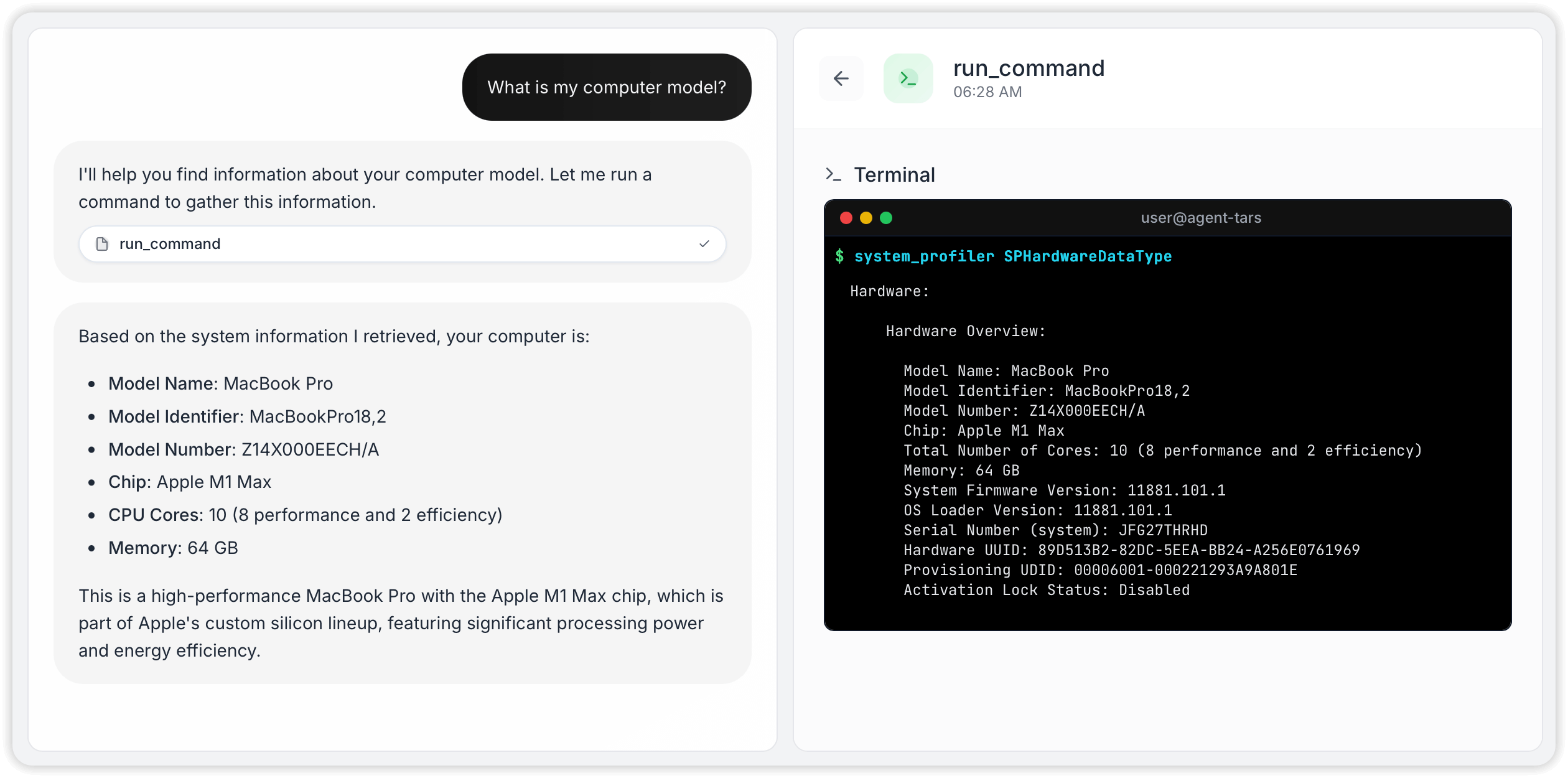 The benefit is not just that the Agent and UI follow certain protocols; if you don't like the UI, you can also replace the UI implementation — yes, this is also one of Agent TARS's future visions, supporting the community to define different Agent TARS UI implementations.